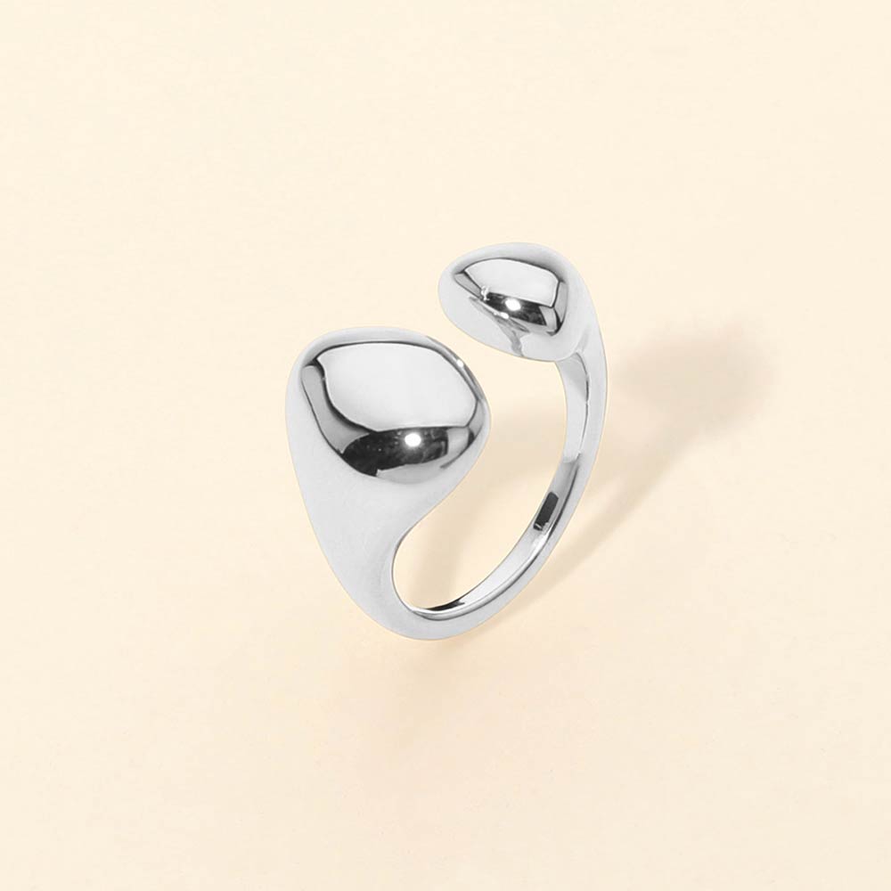 Details • Size : 0.5" H • Adjustable • Water Resistant • Bold adjustable ring featuring a smooth asymmetrical dome design that creates a modern sculptural look. The open wrap construction allows flexible sizing while delivering a high-impact statement. A versatile fashion ring ideal for everyday wear, gifting, and boutique collections seeking clean, contemporary jewelry silhouettes. • Hypoallergenic • Stainless Steel