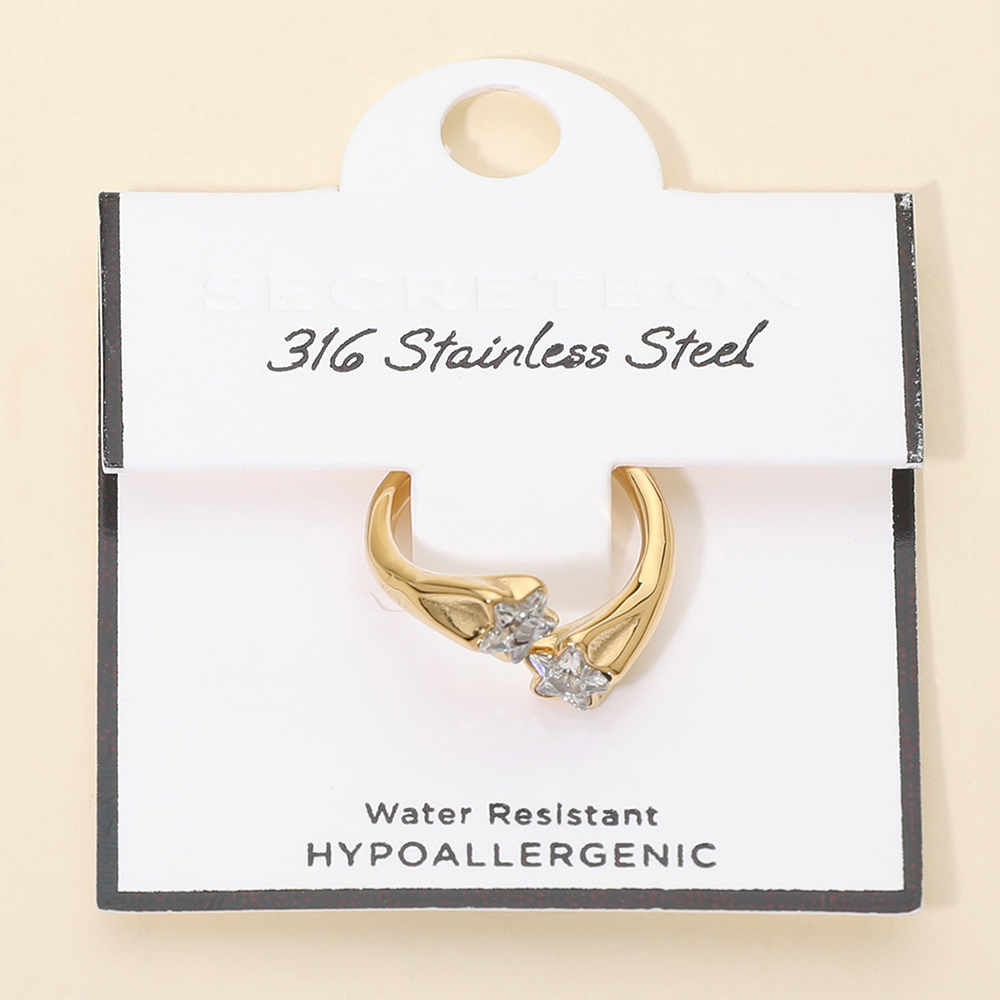 SECRET BOX_Stainless Steel Double Star Stone Tip Wrap Adjustable Ring