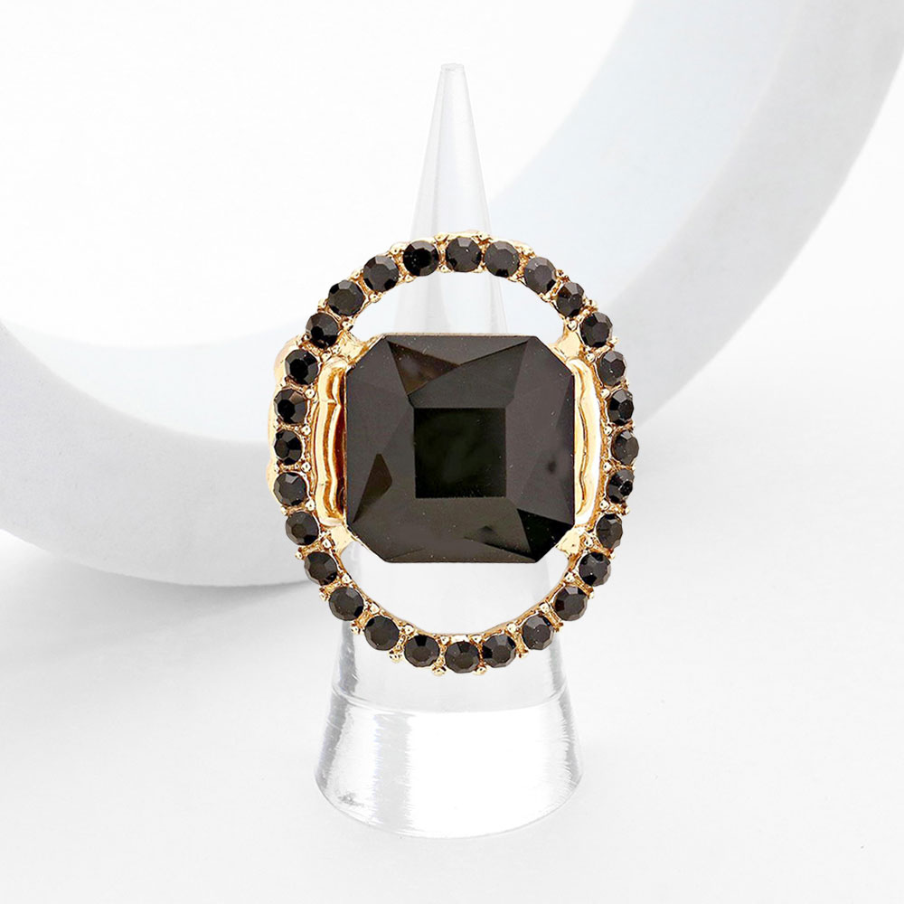 Square Stone Center Rhinestone Paved Rim Stretch Ring Square Stone Center Rhinestone Paved Rim Stretch Ring