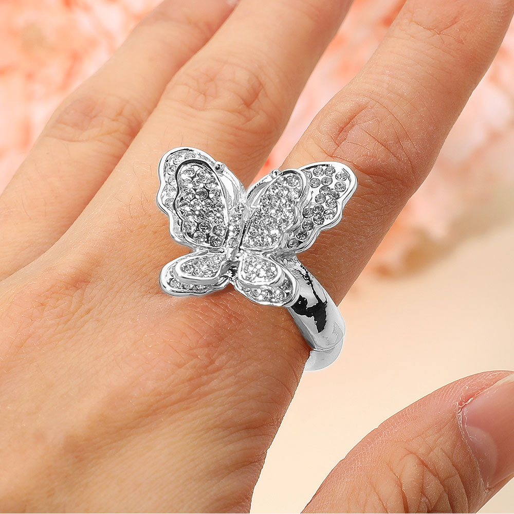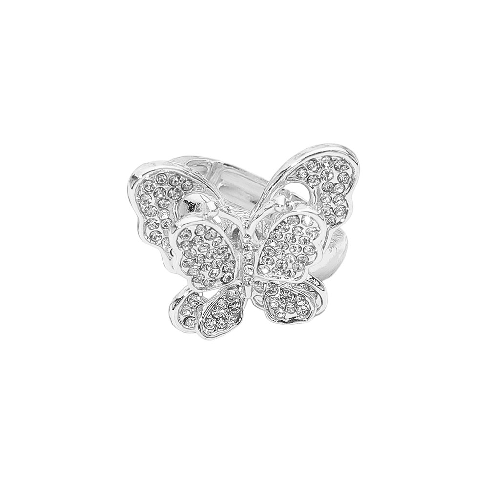 Details • Size : 0.8" H • Stretchable • This butterfly crystal statement ring captures the essence of elegance and whimsy with its sparkling stone-encrusted wings. Designed to shimmer beautifully from every angle, it’s the perfect accessory to express individuality and grace, adding charm to both day and evening looks. • Lead and Nickel Compliant