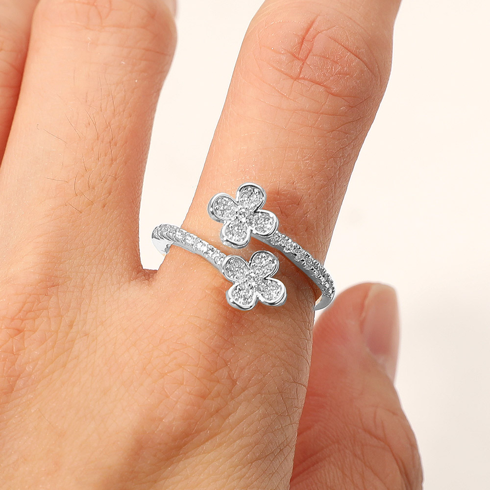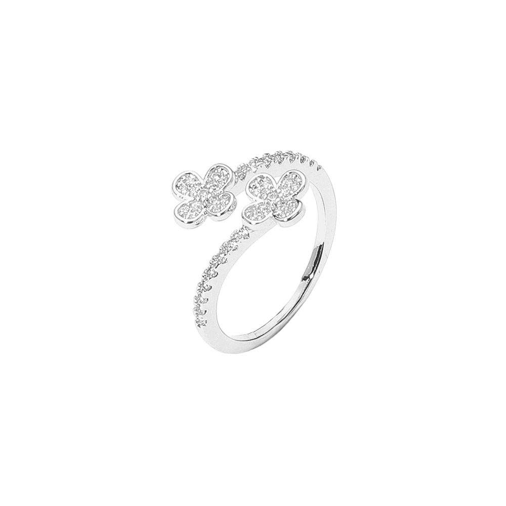• Elegant adjustable ring featuring two sparkling quatrefoil designs for a feminine and stylish touch. Perfect for adding delicate charm to everyday wear or special occasions, this open-band ring offers comfort, shine, and timeless floral elegance.
