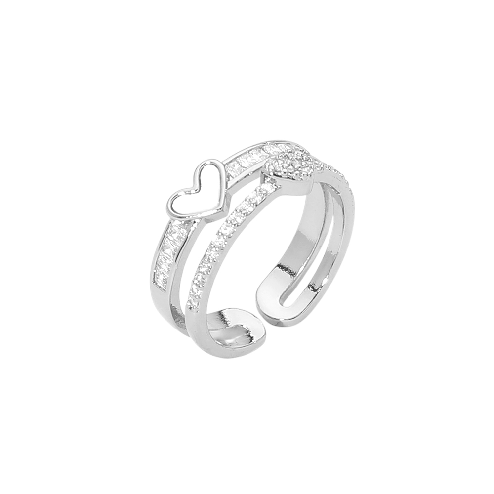 • Stylish adjustable ring designed with a layered double band silhouette and a delicate heart accent. Sparkling stone details add refined shine, making this ring ideal for gifting, stacking, or everyday statement wear in boutique jewelry and fashion accessory collections.