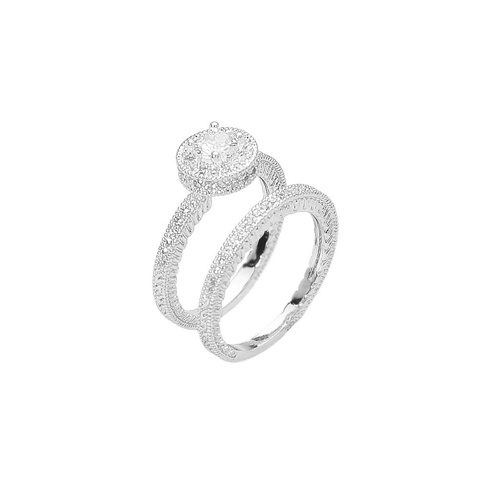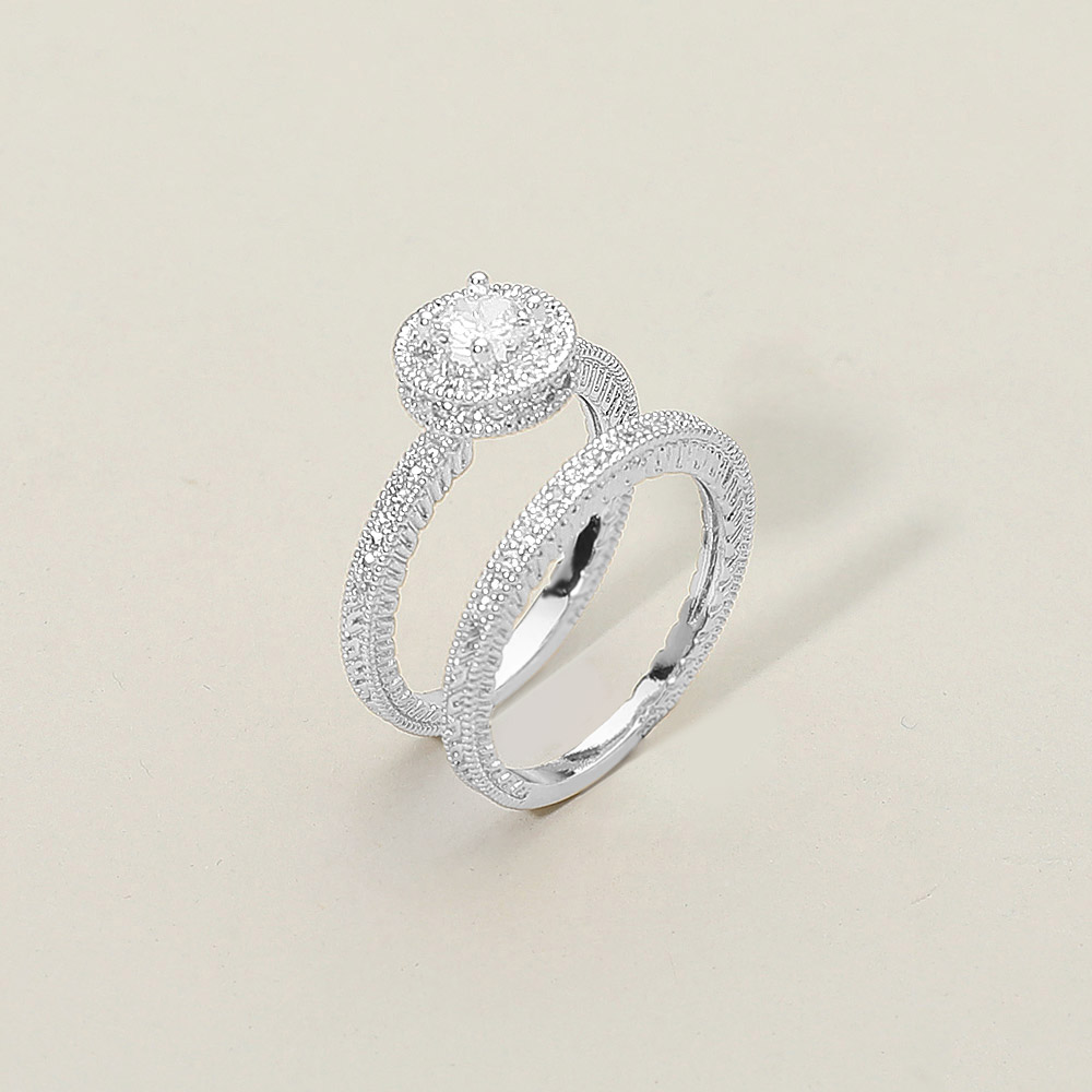 Details • Size : 0.4" H, 0.1" H • Stylish two piece ring set featuring an oval halo cubic zirconia centerpiece complemented by a matching pave band. The elegant design radiates sophistication, perfect for engagements, weddings, or elevating everyday looks with a touch of timeless sparkle. • CZ Cubic Zirconia