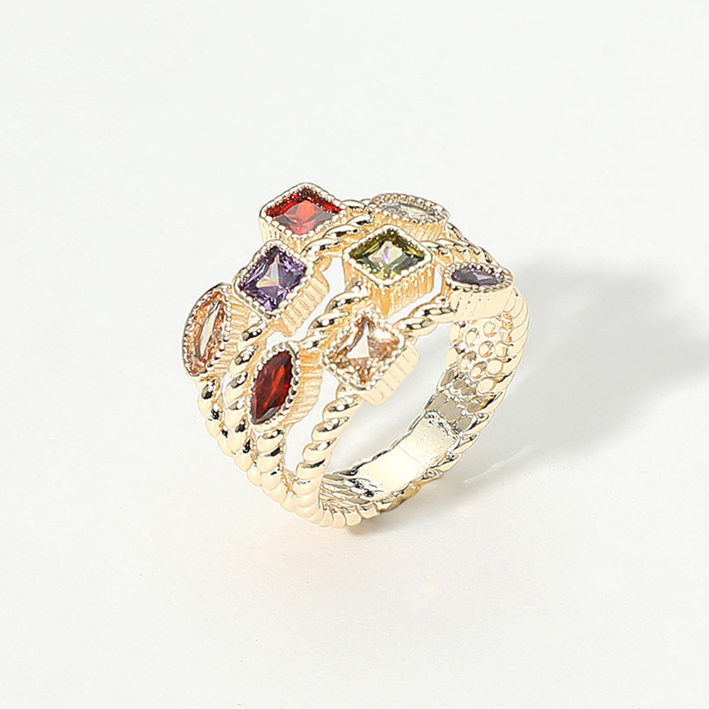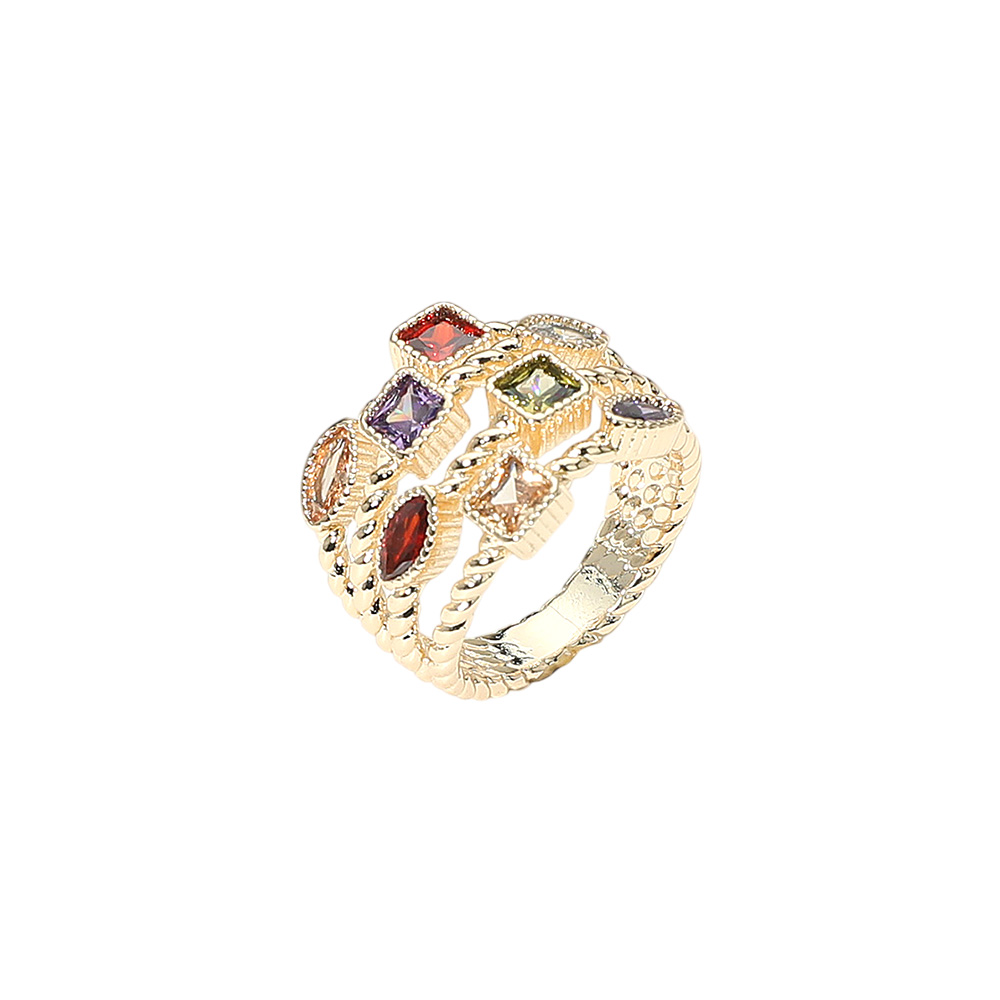 Details • Size : 0.7" H • Add sparkle to your look with this gold plated multi-row ring, beautifully designed with cubic zirconia stones in marquise and square cuts. Perfect for parties, special occasions, or daily elegance, this ring enhances any outfit with timeless sophistication. • CZ Cubic Zirconia