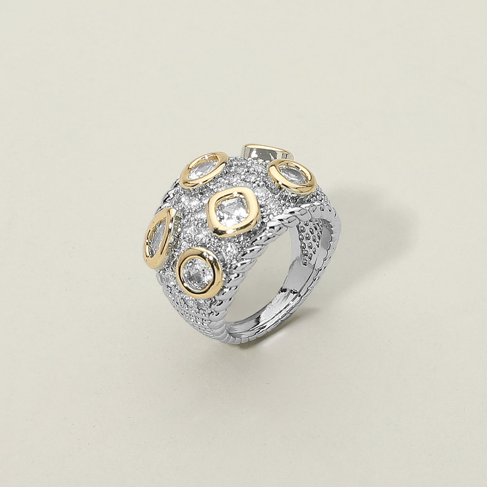 • This bold dome statement ring features a raised pavĂ© design accented with bezel-set stones for eye-catching dimension and shine. Designed to stand out, it adds instant polish to everyday looks or special occasions and is perfect for gifting, stacking, or boutique jewelry collections.
