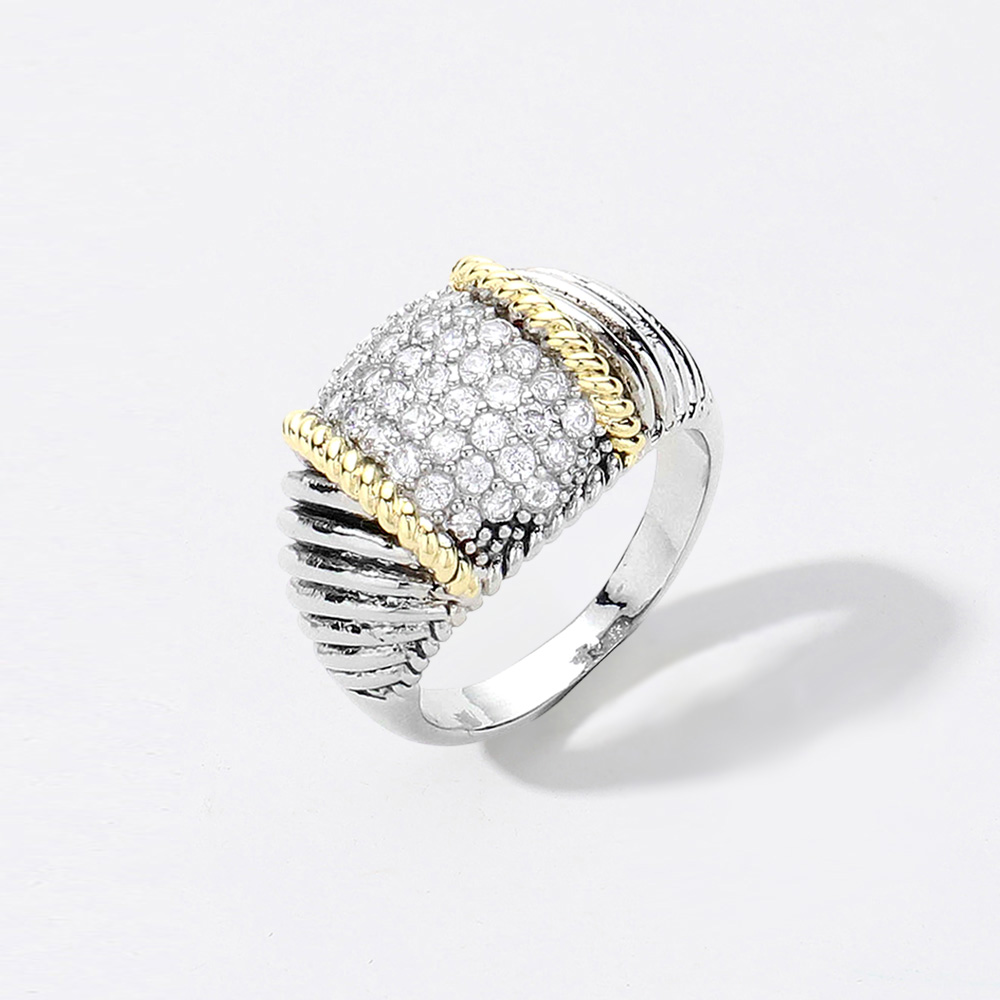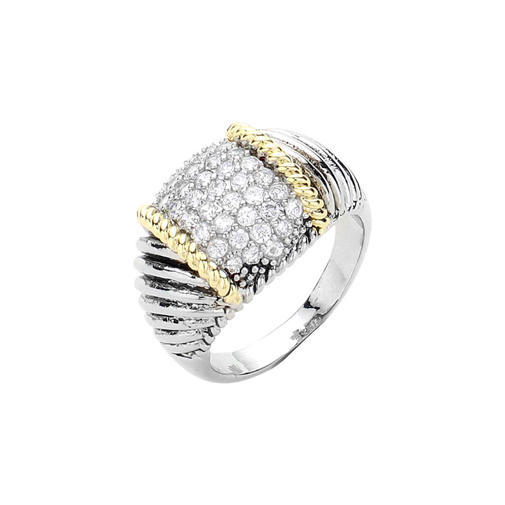 CZ Stone Paved Dome Two Tone Ring