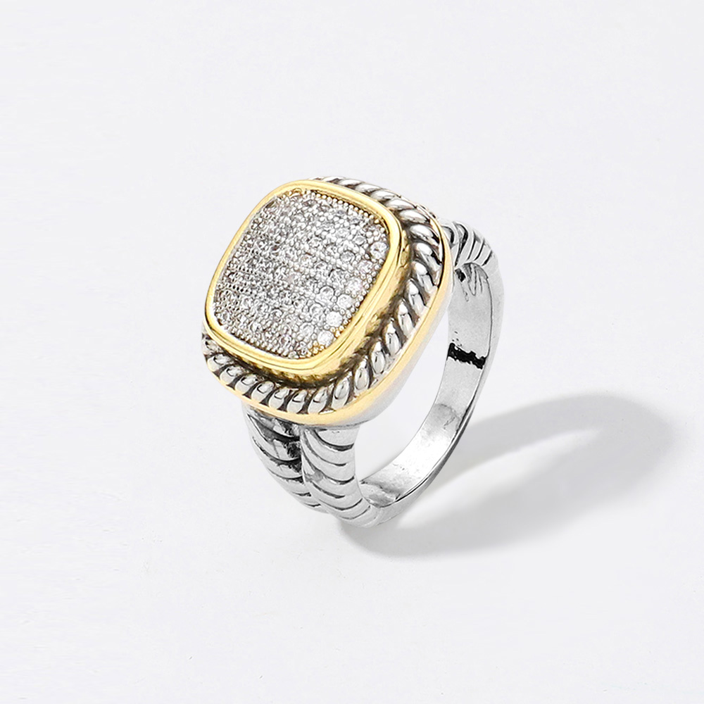 • Statement ring featuring a cushion-cut pave top with intricate rope detailing. A bold yet elegant accessory for refined everyday wear.