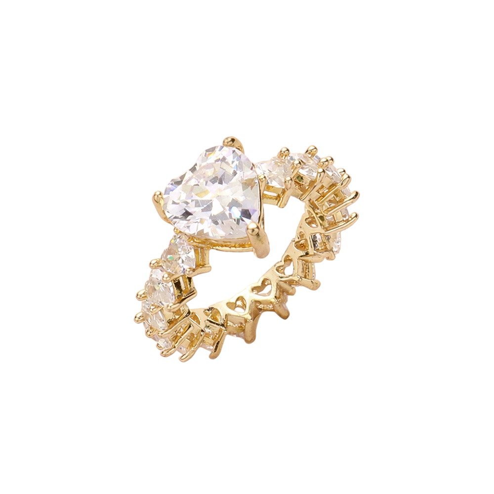 • Elegant eternity-inspired ring featuring a heart-cut center stone framed by a continuous row of sparkling accents. Designed for statement styling, gifting, and special occasions, this fashion ring adds romantic charm to boutique jewelry collections and everyday accessory assortments.