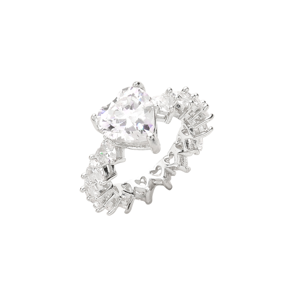 • Elegant eternity-inspired ring featuring a heart-cut center stone framed by a continuous row of sparkling accents. Designed for statement styling, gifting, and special occasions, this fashion ring adds romantic charm to boutique jewelry collections and everyday accessory assortments.
