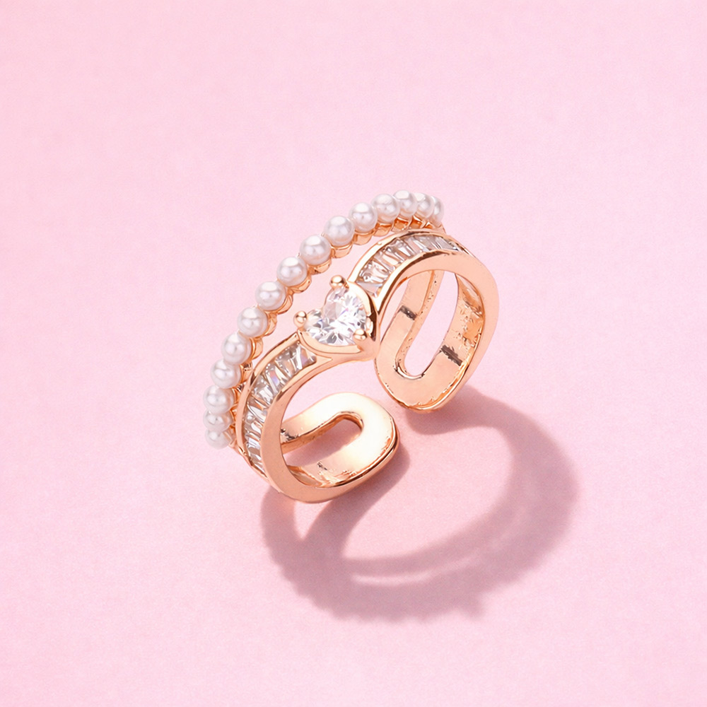 Details • Size : 0.4" H (size 7 only) • Statement open band ring designed with delicate pearl accents and a sparkling center stone for a refined, elegant look. Adjustable silhouette offers comfortable everyday wear or special occasion styling. A versatile fashion ring perfect for gifting and boutique jewelry collections seeking timeless charm. • Lead and Nickel Compliant