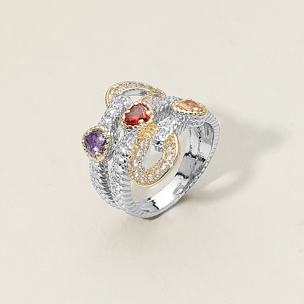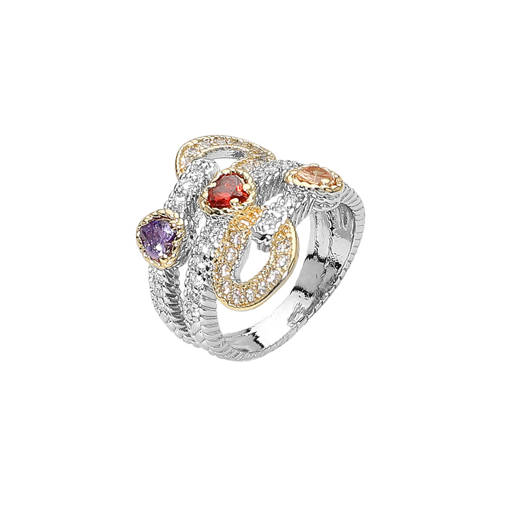 Details • Size : 0.75" H • Elegant multi-cz stone ring designed with swirling bands and vibrant accents that create a dynamic, artful look. Its intricate detailing and bold arrangement make it a standout accessory perfect for adding refined flair to both special occasions and everyday outfits. • CZ Cubic Zirconia