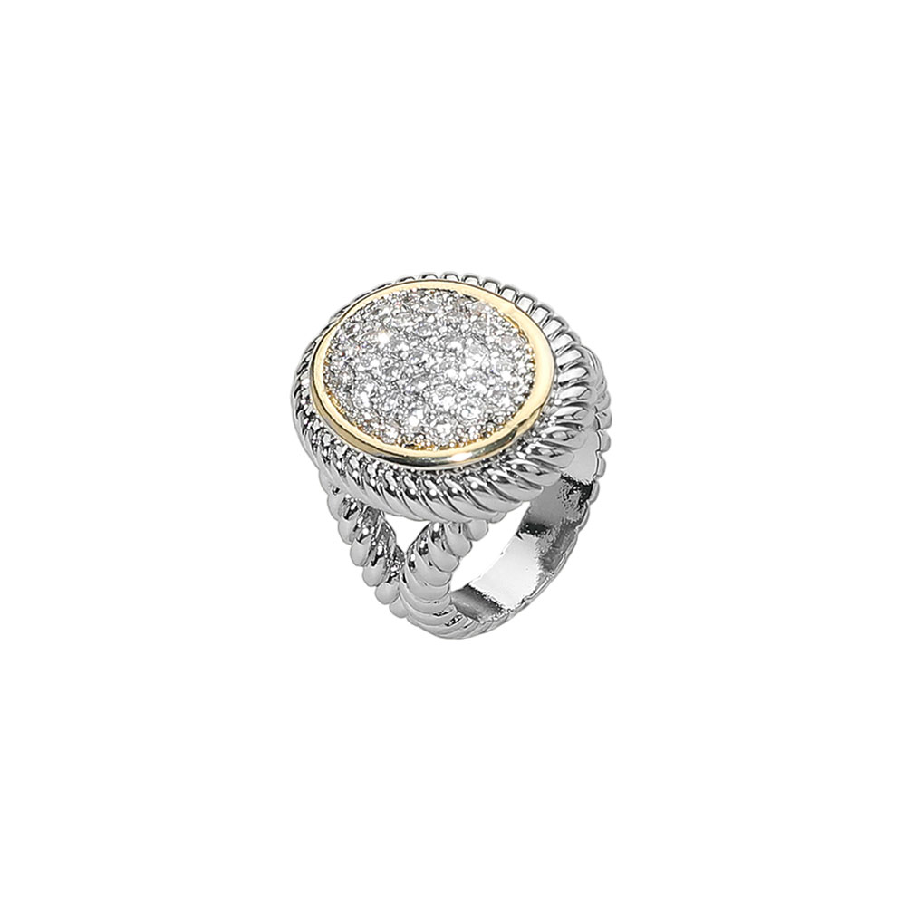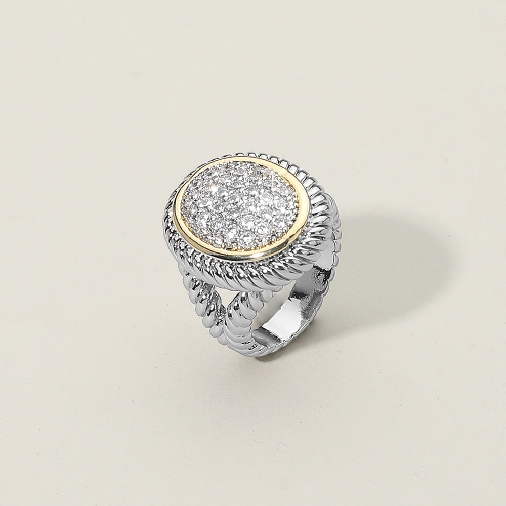 Details • Size : 0.8" H • A striking round statement ring featuring a shimmering center framed by intricate detailing for a bold, polished finish. Its sculpted band adds dimension and elegance, making it an ideal accessory for enhancing both everyday looks and refined, occasion-ready styles. • CZ Cubic Zirconia