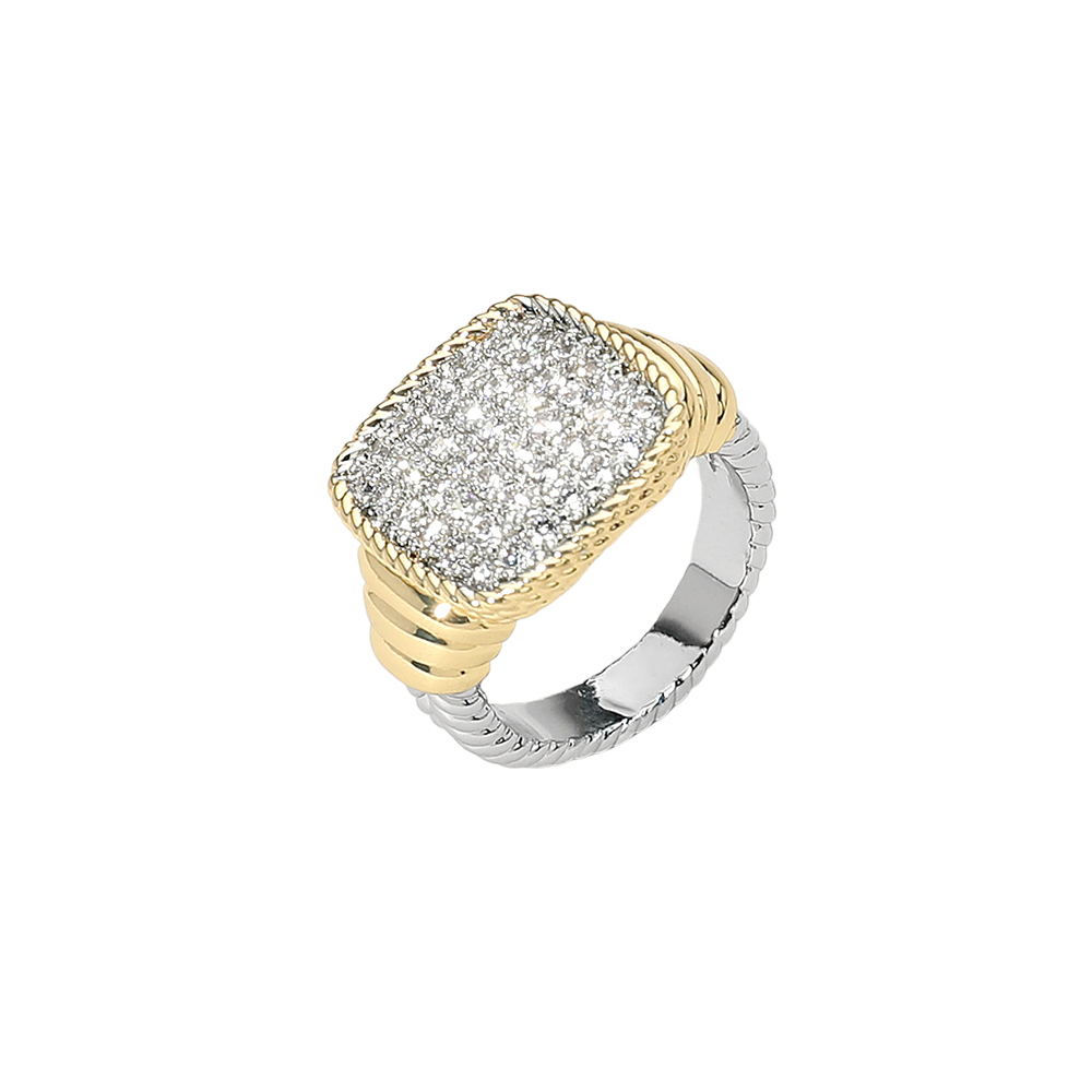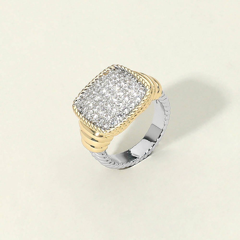 Details • Size : 0.6" H • Elevate your style with this square pave stone statement ring. Featuring a textured band and a shimmering cluster of stones, it adds a bold yet refined touch to any look—perfect for evening events, celebrations, or sophisticated everyday wear. • CZ Cubic Zirconia