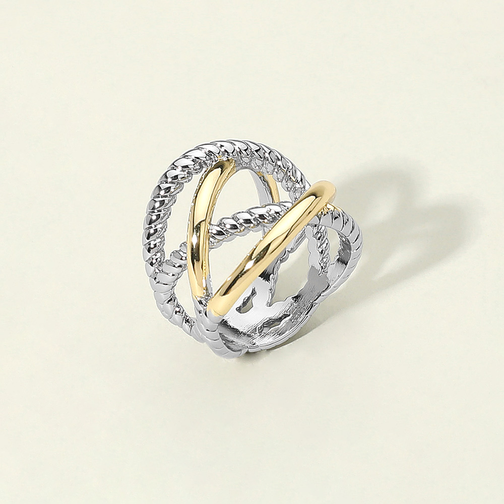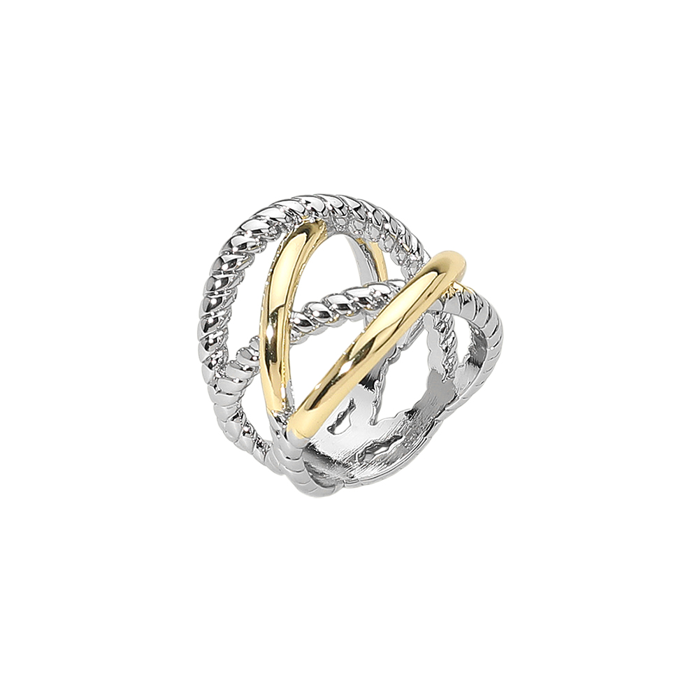 Details • Size : 0.75" H • Make a modern statement with this interwoven textured band ring. Designed with smooth and twisted elements in a layered silhouette, it offers a bold yet elegant finish that complements both casual and formal looks effortlessly.