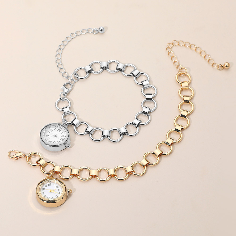 • Add a touch of modern sophistication with this round link bracelet watch. Featuring interlocking circular links and a petite round watch pendant, it offers a sleek, contemporary design that blends timeless elegance with everyday practicality. Perfect for any occasion.