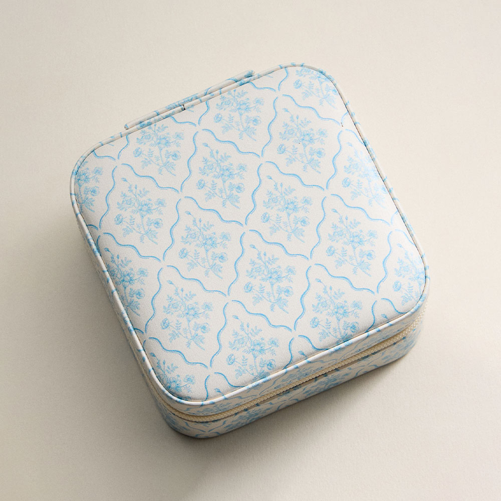 • Keep your favorite jewelry organized and protected on the go with this compact travel case featuring multiple divided compartments, secure ring slots, and a built-in mirror for quick accessorizing. The elegant floral pattern adds a stylish touch, while the zip closure ensures pieces stay safe. Perfect for trips, daily storage, or gifting to jewelry lovers.