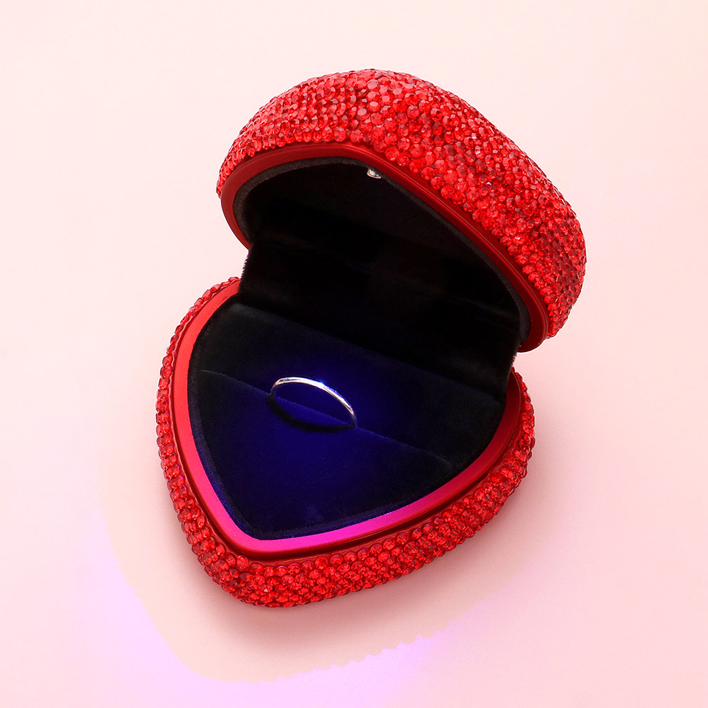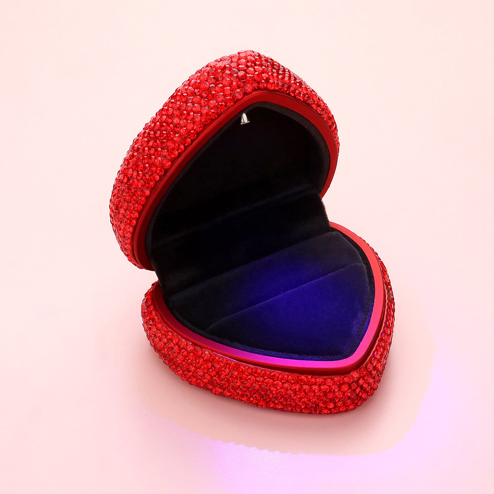 LED Light Bling Studded Heart Shaped Jewelry Ring Case