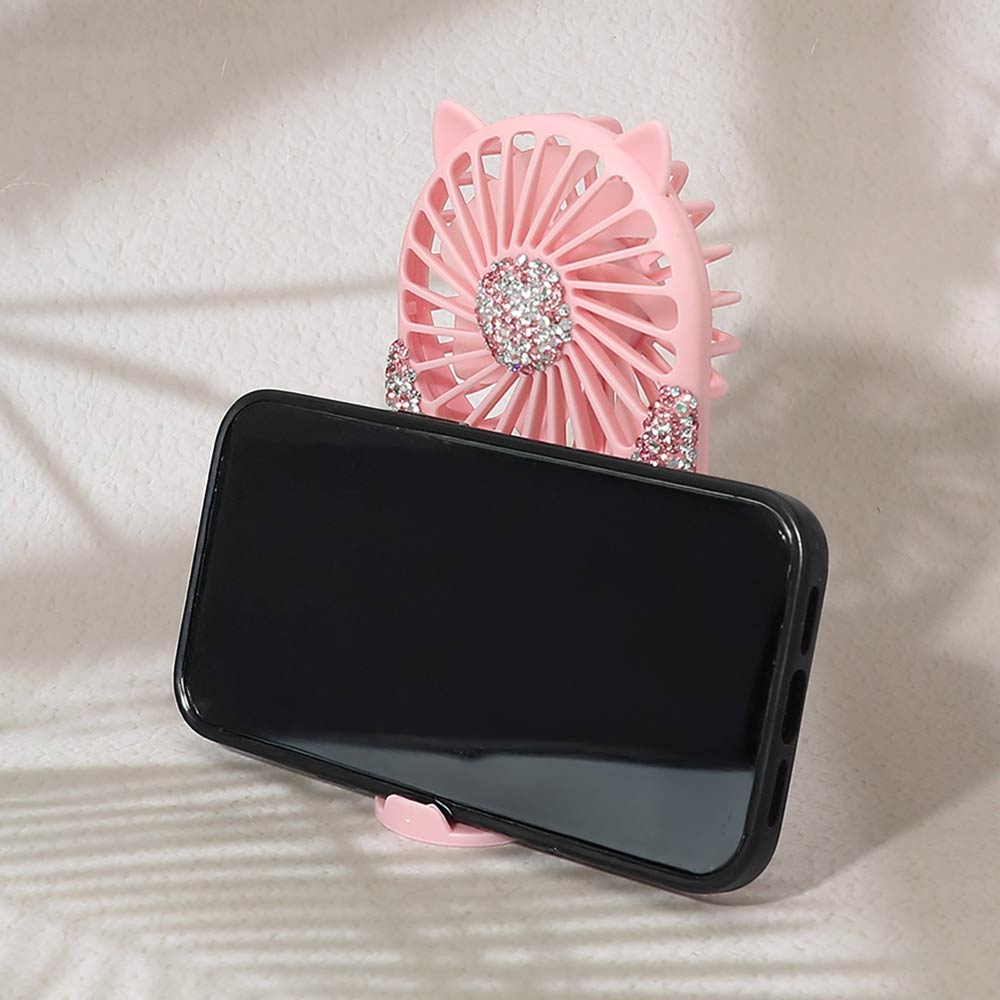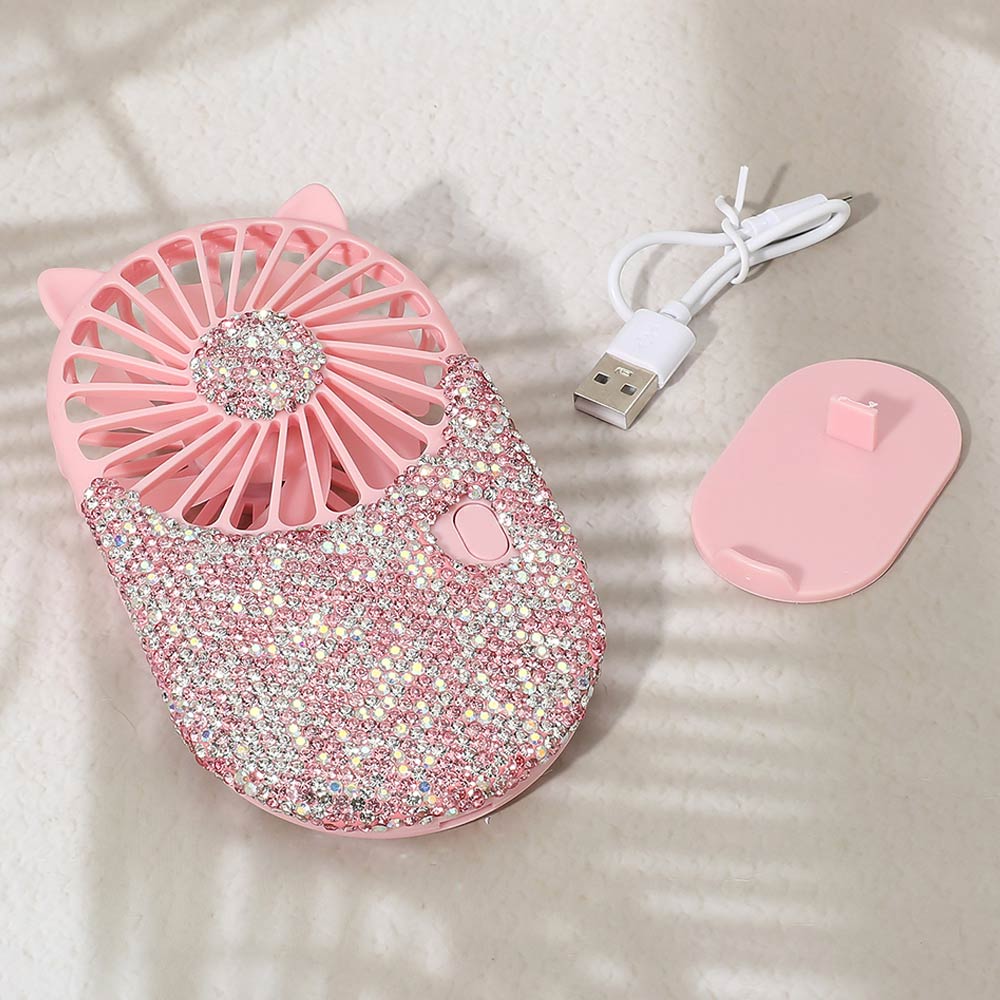 Bling Studded Cat Ear Mini Hand Held Pocket Desk Fan