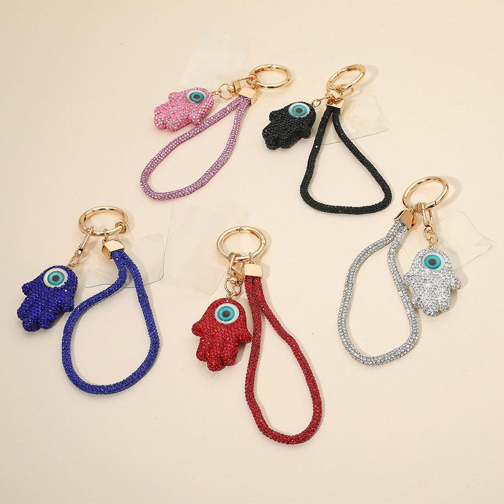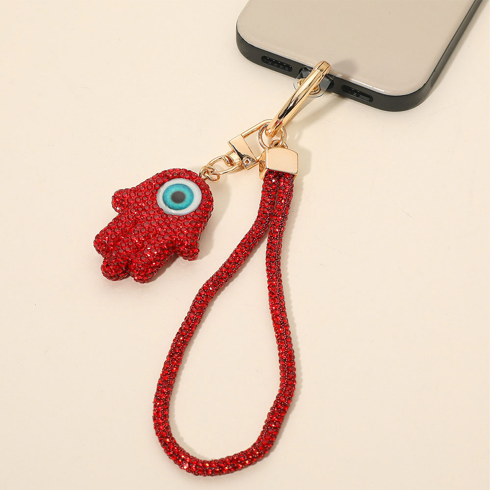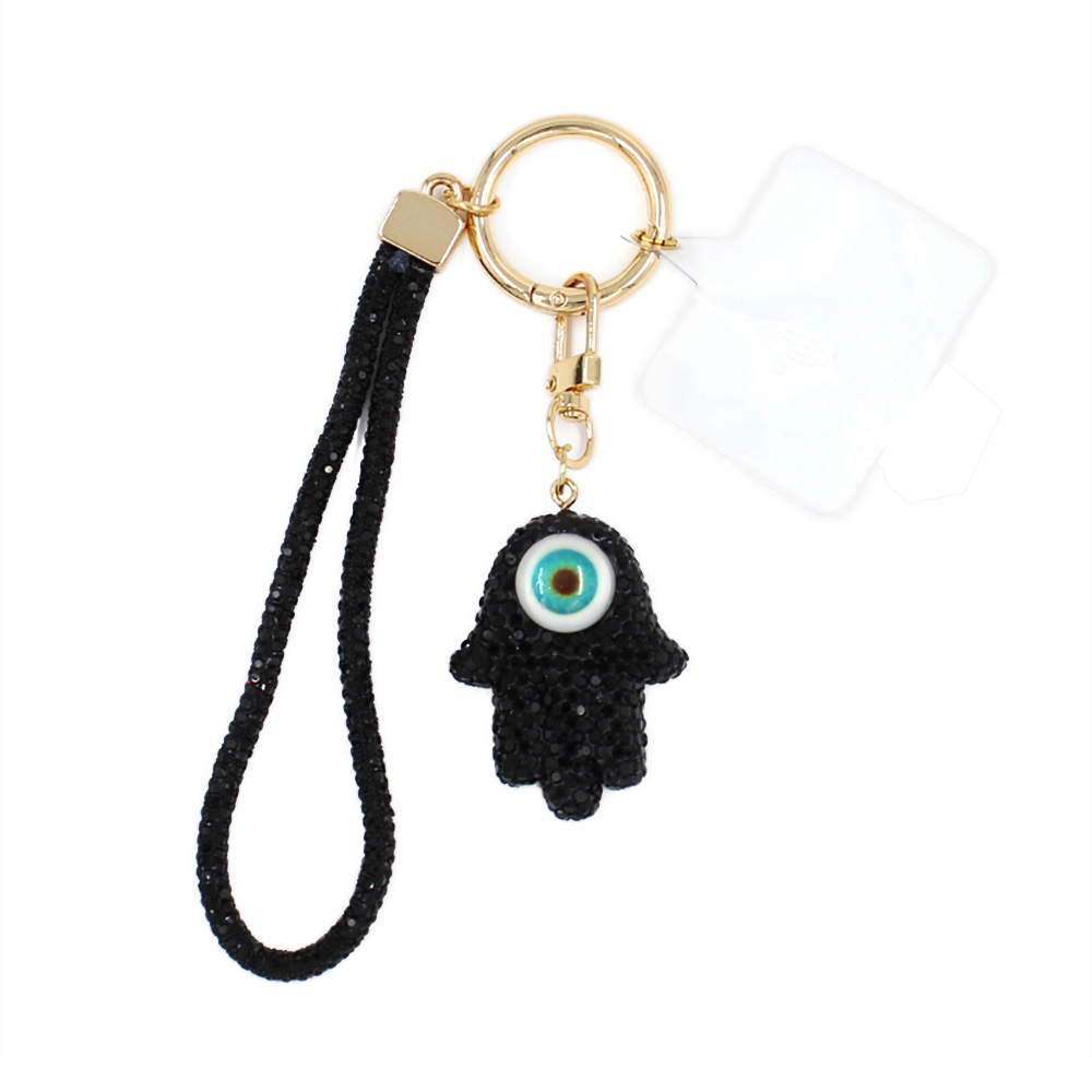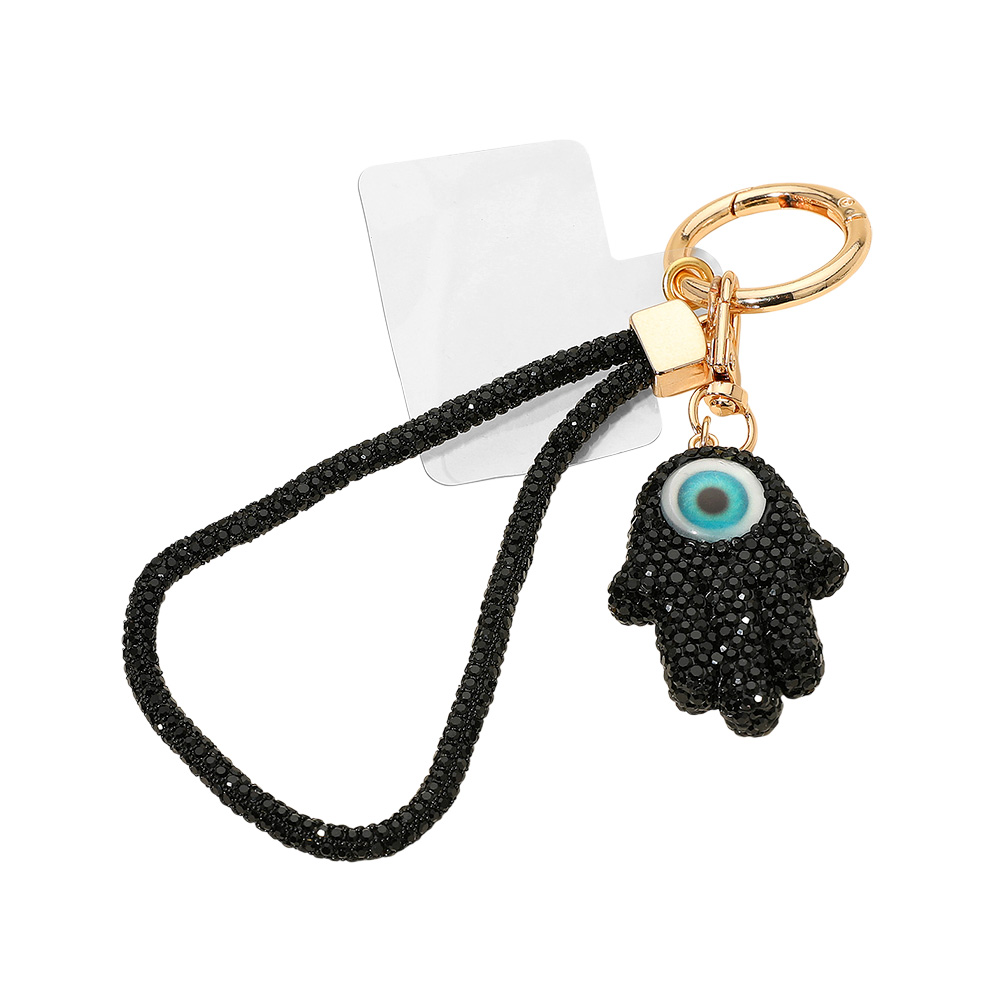 Bling Studded Evil Eye Hamsa Hand Charm Keychain Bag Charm Phone Holder