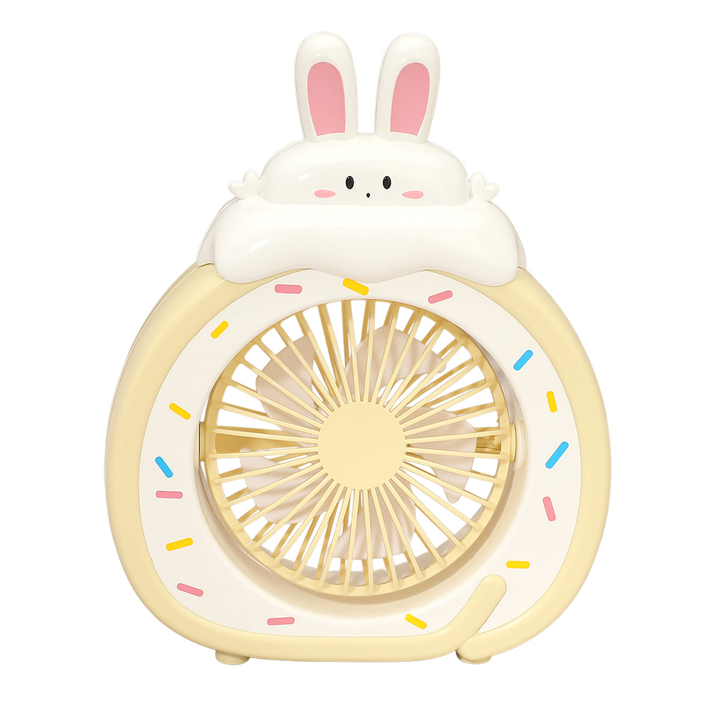 Details • Size : 6" X 7.5" X 1.7" • 3 Speed Control • USB Charging Cable Included • Adorable bunny-shaped desktop fan designed for gentle personal cooling at home, office, or study spaces. Compact size fits desks and shelves easily while adding playful charm. Ideal for kids, gifts, dorm rooms, and everyday comfort with quiet airflow.