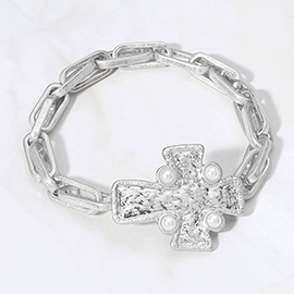 3PCS - Metal Cross Station Stretch Multi Layered Bracelets