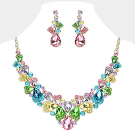 Teardrop Stone Cluster Embellished Evening Statement Necklace