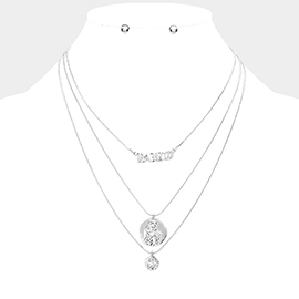 Double Layered Metal Cross Jesus Disc Drop Chain Tassel Necklace