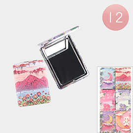 12PCS - Girl Illustration Printed Cosmetic Mirrors